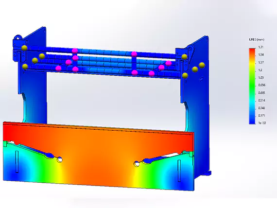 Análisis por elementos finitos (FEA) se aplica en nuestro diseño de freno de presión para simular y optimizar el rendimiento estructural en condiciones de trabajo reales. Analizando la distribución de tensiones, deformación, y capacidad de carga, Nos aseguramos de que el bastidor de la máquina alcance la máxima resistencia, precisión, y durabilidad antes de la producción.